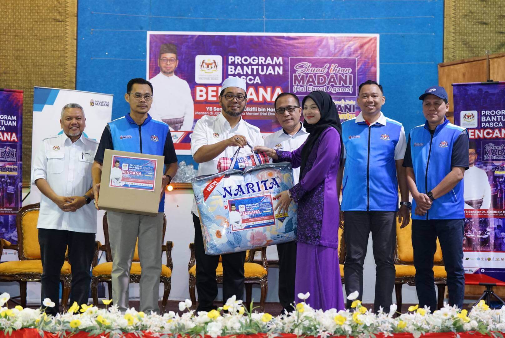 Majlis penyerahan sumbangan telah disempurnakan oleh YB Senator Dr. Zulkifli bin Hasan, Menteri di Jabatan Perdana Menteri (Hal Ehwal Agama), sebagai manifestasi keprihatinan kerajaan dalam memastikan kebajikan mangsa banjir dan pelajar yang terjejas terus diberi perhatian.