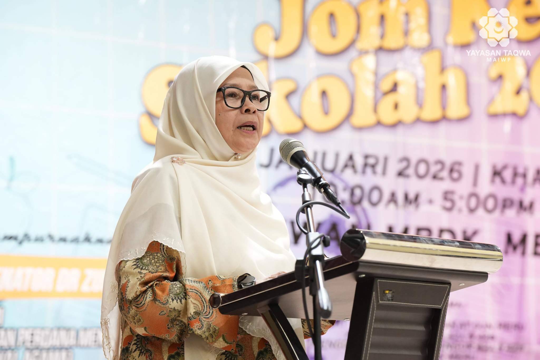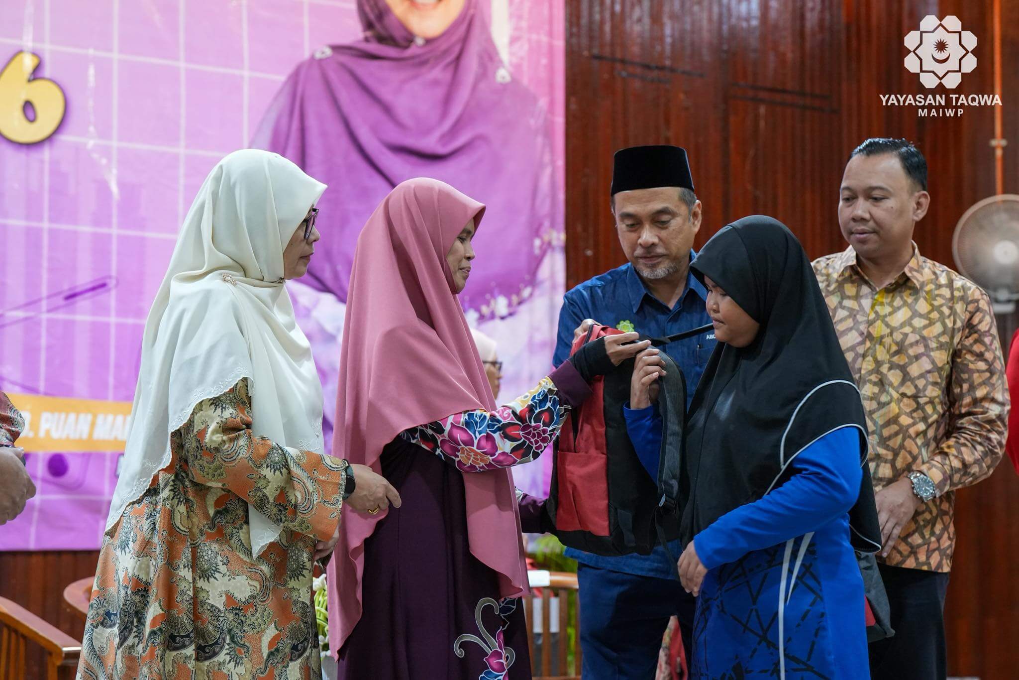 Turut Hadir, YB. Puan Mariam Abdul Rashid, Ahli Dewan Negeri Meru, YBhg. Tuan Hj. Abdul Aziz Bin Abd. Jalal, Ahli Lembaga Pemegang Amanah Yayasan Taqwa-MAIWP, YBhg. Tuan Hj. Abdullah Zuhdee Bin Ab Halim, Ketua Pegawai Eksekutif Yayasan Taqwa-MAIWP, YBhg. Mohd Fitri Aziz Bin Mohd Yusof, Pengarah YADIM Negeri Selangor serta tetamu jemputan ibu bapa dan para pelajar.