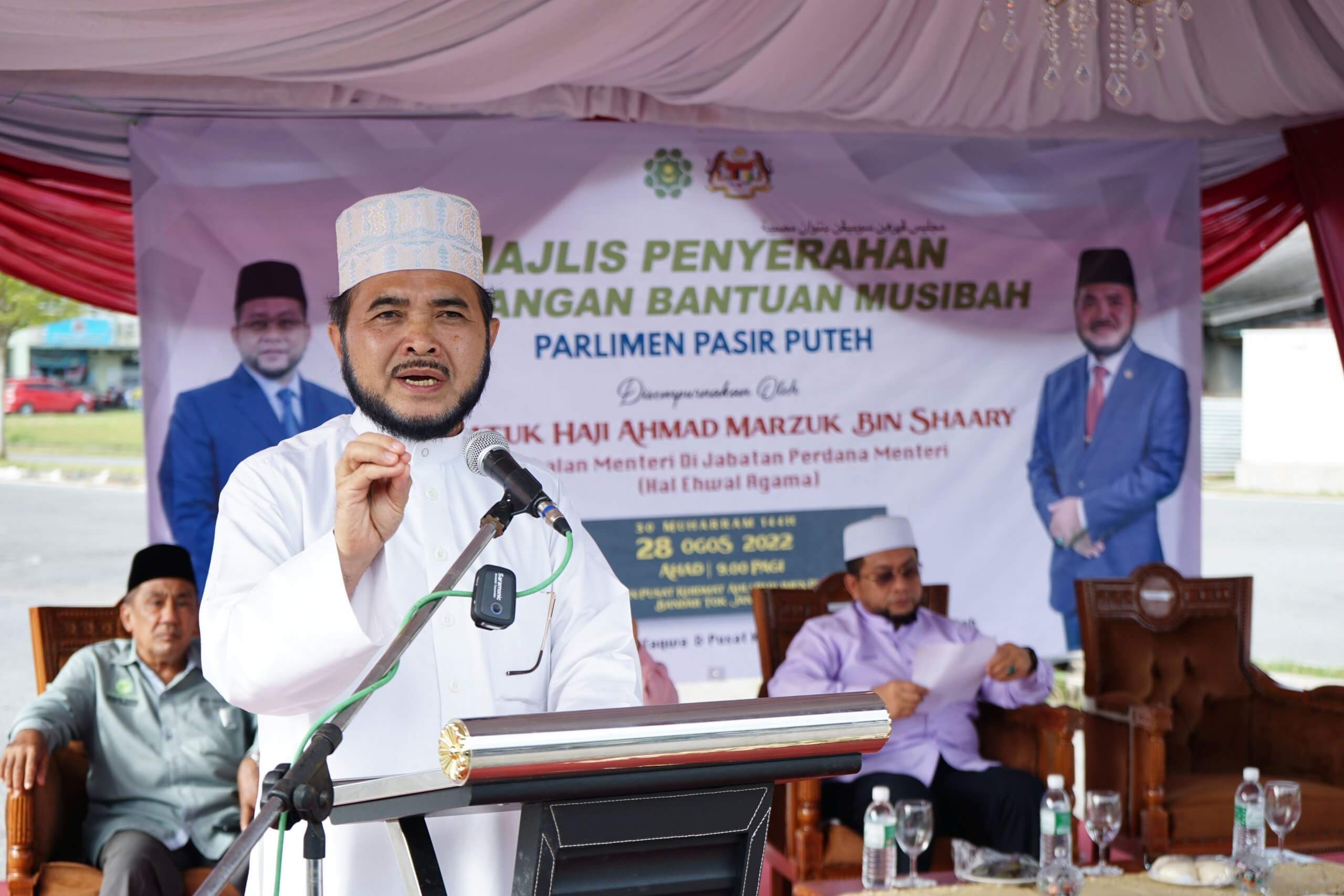 Majlis Penyerahan tersebut telah disampaikan oleh Timbalan Menteri di Jabatan Perdana Menteri (Hal Ehwal Agama), YB Datuk Haji Ahmad Marzuk bin Shaary kepada Ahli Parlimen Pasir Puteh merangkap Timbalan Menteri Pertanian & Industri Makanan II , YB Datuk Dr Nik Muhammad Zawawi bin Hj Salleh serta kepada Pengerusi Masjid Mukim Merbau.
