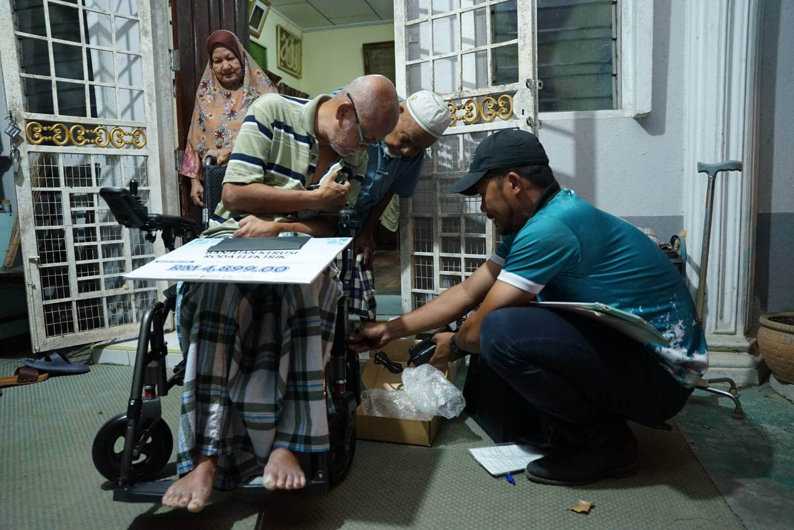 Sumbangan kerusi roda elektrik ini diharapkan dapat memudahkan pergerakan, meningkatkan kualiti hidup serta memberi keselesaan kepada beliau.
